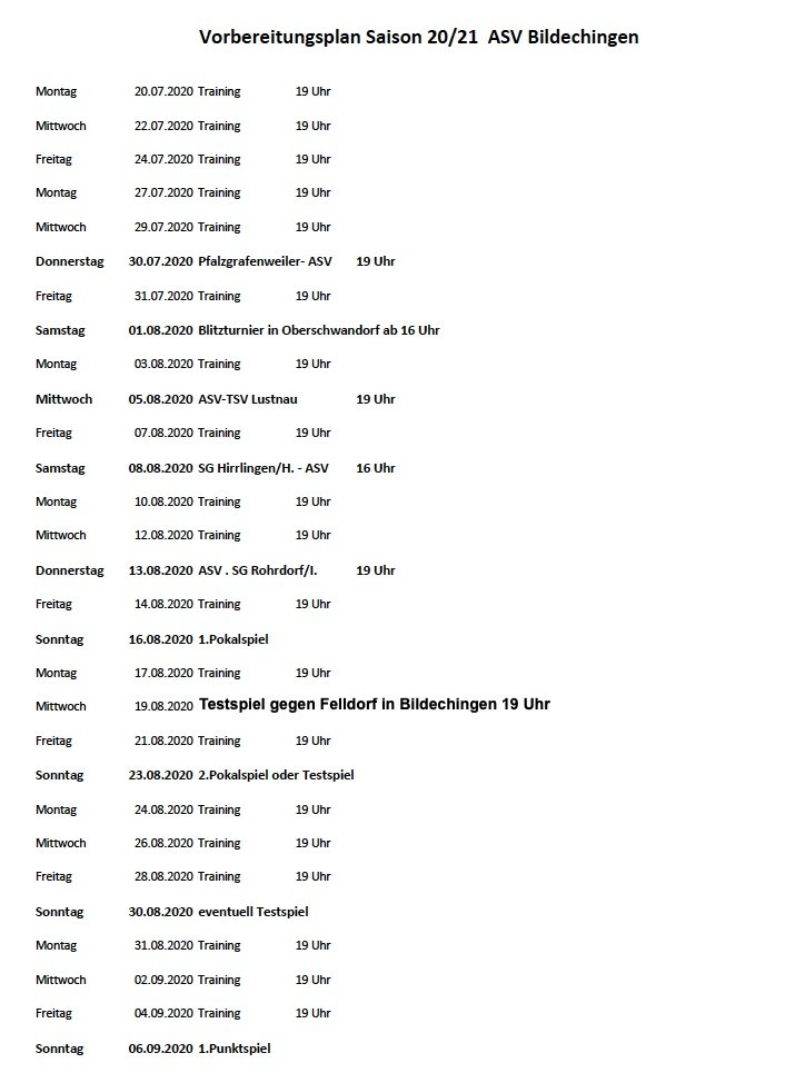 Vorbereitung Saison 2020/21